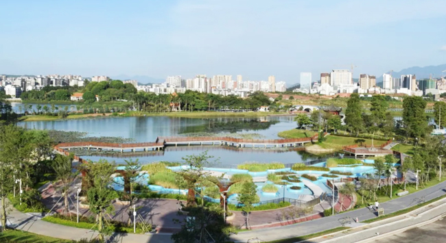 目前项目总体已完工90%。组成以红枫海、紫薇海、三支渠、泉水河和园区内生态廊桥、飞行区、儿童区 、蝴蝶区、诸葛故居仿古建筑群以及绿化工程的山水画卷。建成后将以“都广之野·诸葛故里文化”为主题为该公园进行命名,充满厚重历史感。