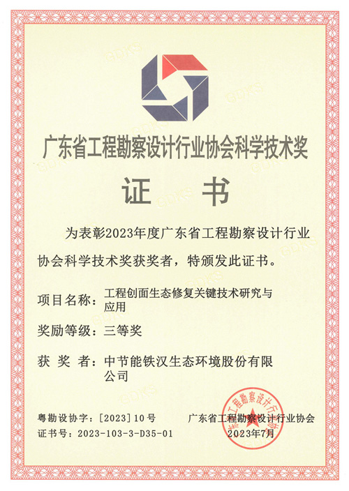 喜报 | 星空体育一项生态修复技术获2023年度广东省勘察设计行业协会科学技术奖三等奖