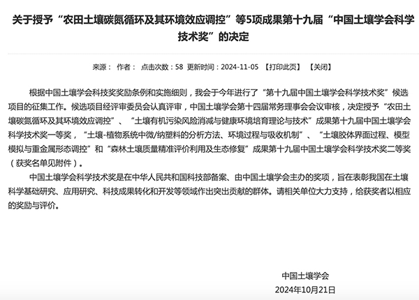 喜报|星空体育一项目获中国土壤学会科学技术奖二等奖