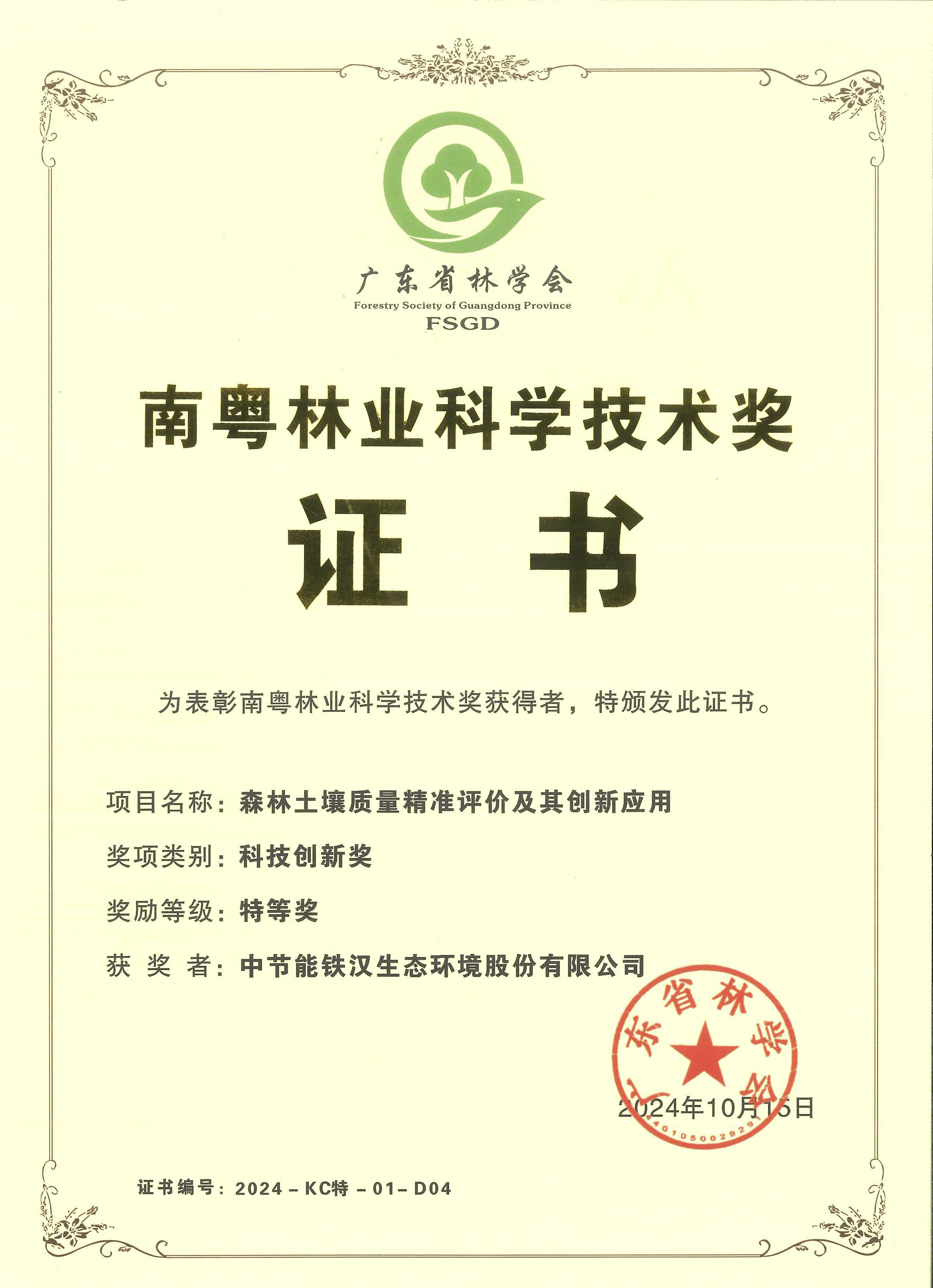 近日,广东省林学会第六届南粤林业科学技术奖评审结果揭晓,由星空体育(中国)官方网站 - 登录入口联合广东省林业科学研究院、中山大学等单位共同申报的《森林土壤质量精准评价利用及生态修复》成果再获殊荣,荣获该奖项科技创新类“特等奖”。该成果早前还荣获了第十九届中国土壤学会科学技术奖二等奖。