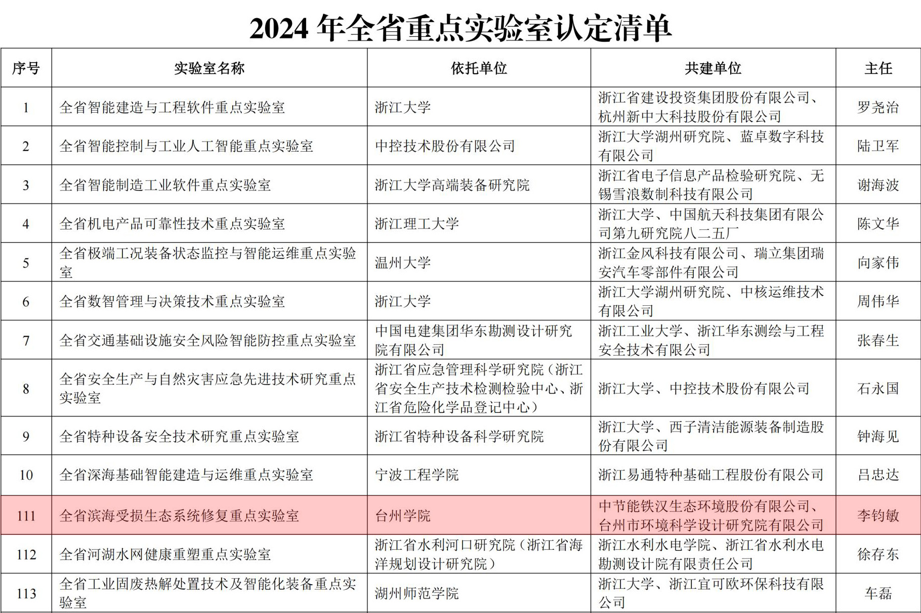 近日,星空体育(中国)官方网站 - 登录入口与台州学院、台州市环境科学设计研究院有限公司共同申报的“全省滨海受损生态系统修复重点实验室”通过浙江省科学技术厅认定,成为浙江省首个滨海生态修复实验室。