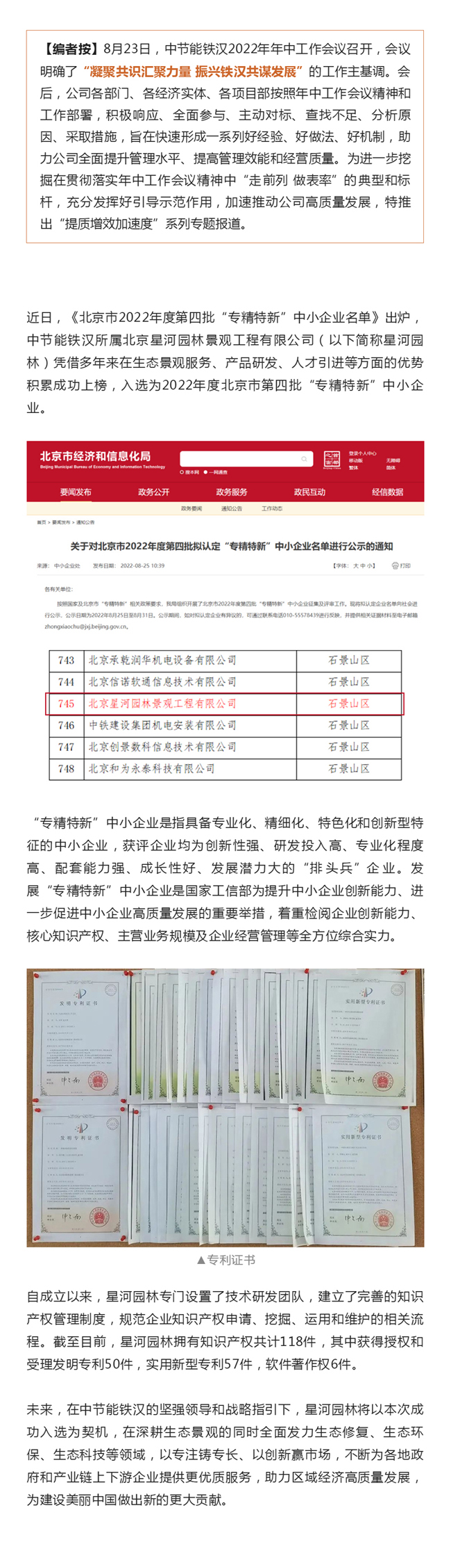 提质增效加速度 | 星河园林入选北京市2022年度第四批“专精特新”中小企业