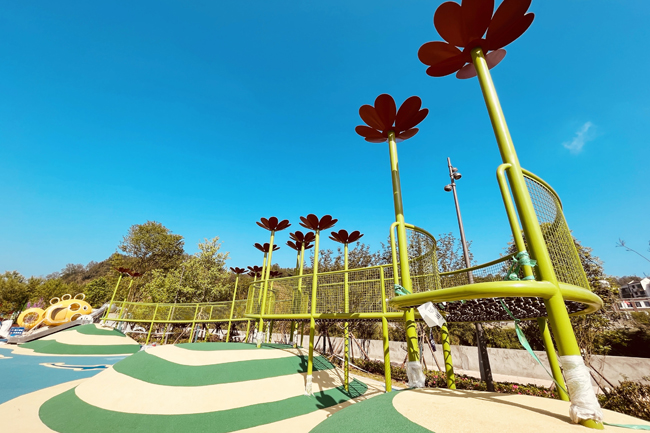 近日,项目部大力推进儿童乐园区域建设,完成了熊猫滑梯、手型爬网、雪山钢结构、游泳池、荷花爬网等节点,在春日樱花的浪漫氛围中,五彩斑斓的儿童乐园已初见规模。此外,项目部重点攻坚体育公园LED三面屏、草帽钢结构、体育商业建筑等主要施工内容均顺利完成,为如期交付打下坚实基础。