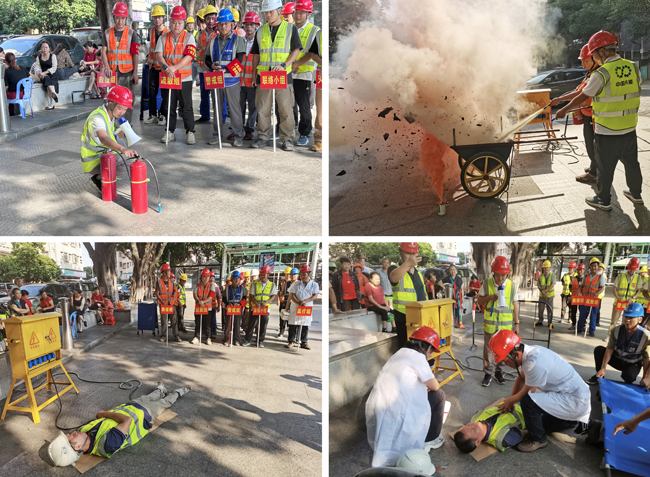 此次应急演练活动主要包括消防应急演练、触电应急演练、高处坠落演练。消防演练部分主要模拟火灾事故发生时的应急响应和初期灭火,以检验项目部在火灾发生时的快速反应能力和协同作战能力。触电应急演练则主要针对作业现场可能发生的触电事故,学习如何正确使用安全工器具,了解触电后的急救措施以及心肺复苏法等。高处坠落演练是为了模拟高处作业过程中发生意外坠落的情况,检验应急预案的有效性和可操作性,同时提高作业人员的安全意识和应急处置能力。演练过程中,项目部全体人员积极参与,互相配合,顺利完成了各项演练任务。