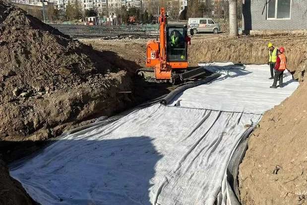 项目位于北京市朝阳区,工程内容涵盖分界线以西的硬景铺装工程、硬景小品工程、软景工程、安装工程、设施部品工程及验收拆改工程等内容。目前,项目进入结构施工阶段,以廊架钢结构和水景钢筋混凝土工作为主,项目部有针对性地制定冬期施工方案,落实、落细各项冬期施工措施。